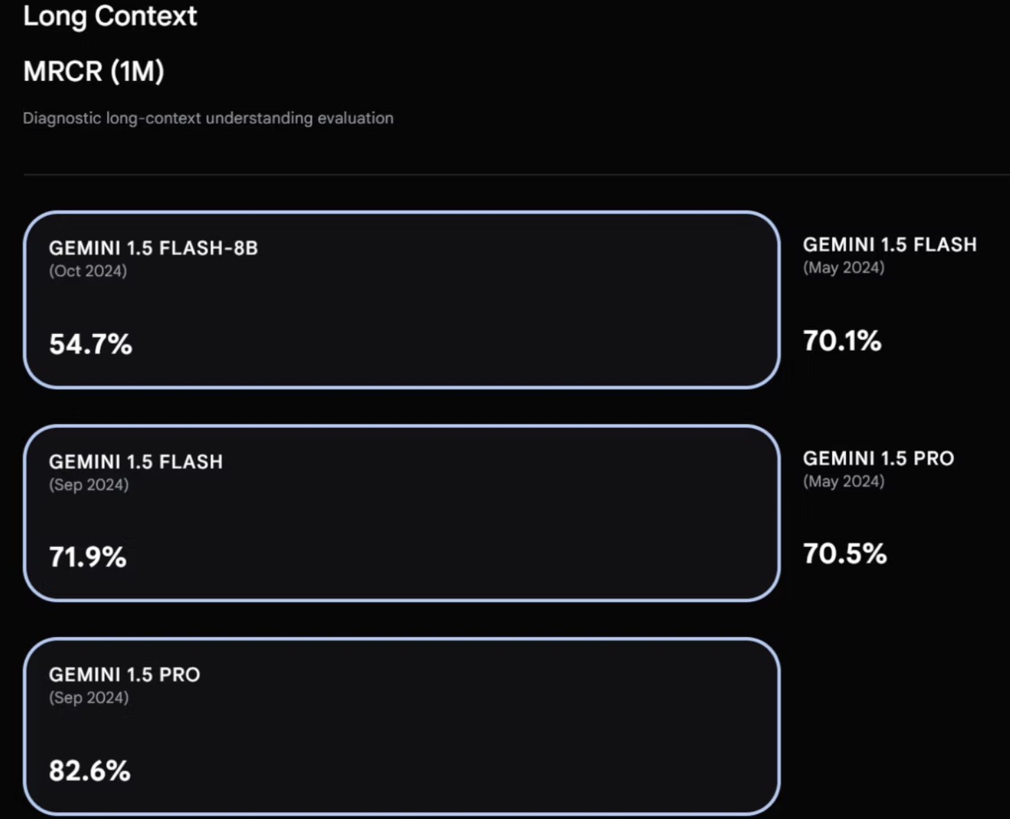 This is because the Gemini model most frequently used by consumers, Gemini 1.5 Flash-8B, has a 54.7% accuracy rating for interpreting long context texts (as shown below). From a content strategy perspective, this could mean that shorter content may help with visibility in this model.